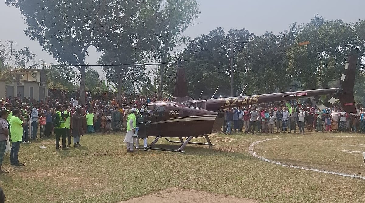 প্রায় এক যুগ প্রবাসে আছেন জাহাঙ্গীর আলম। তাঁর স্বপ্ন ছিল, মা–বাবাকে হেলিকপ্টারে চড়াবেন। আজ বৃহস্পতিবার সকালে ঢাকায় ফিরে তিনি মা–বাবাকে নিয়ে হেলিকপ্টারে চড়ে গ্রামের বাড়িতে আসেন।