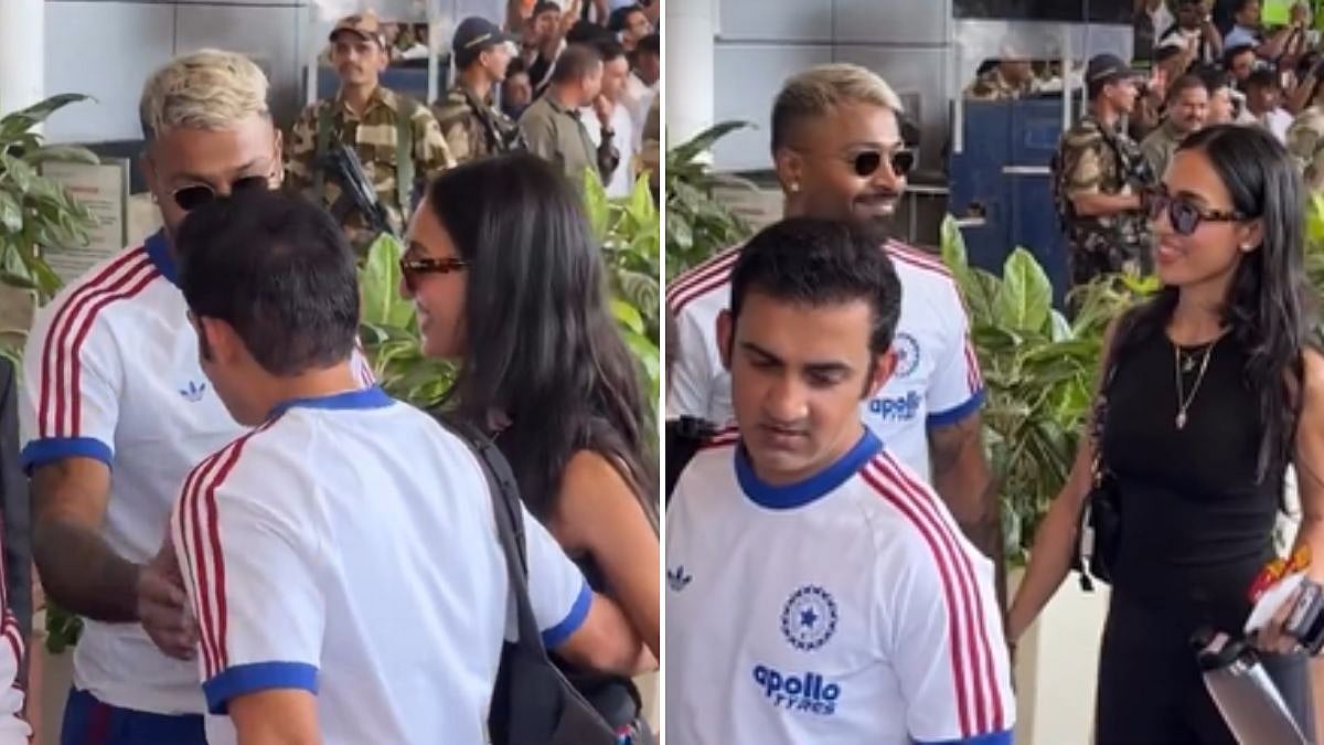 In a viral video at the Mumbai airport, Hardik Pandya and Mahieka Sharma were together with Gautam Gambhir just walked ahead. Pandya tapped Gambhir and introduced him to his partner, who greeted her with a side hug. The entire meet up seemed forced and awkward as pointed out by netizens online.