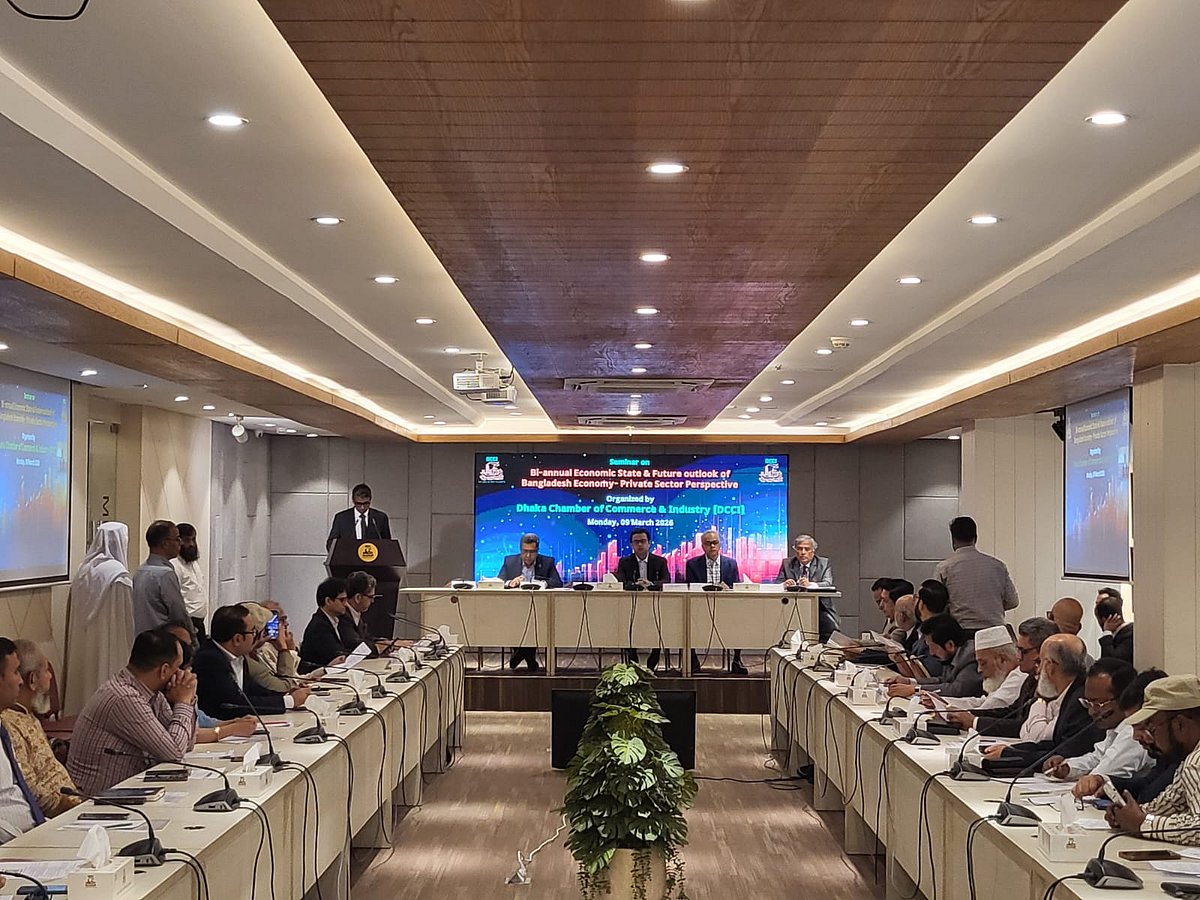 আজ সোমবার রাজধানীর মতিঝিলে ঢাকা চেম্বার অব কমার্স অ্যান্ড ইন্ডাস্ট্রির (ডিসিসিআই) মিলনায়তনে ‘বেসরকারি খাতের দৃষ্টিতে বাংলাদেশের অর্থনীতির বর্তমান অবস্থা ও ভবিষ্যৎ সম্ভাবনা’ শীর্ষক সেমিনারে এ কথা বলেন বক্তারা। মূল প্রবন্ধ উপস্থাপন করেন ঢাকা চেম্বারের সভাপতি তাসকীন আহমেদ।