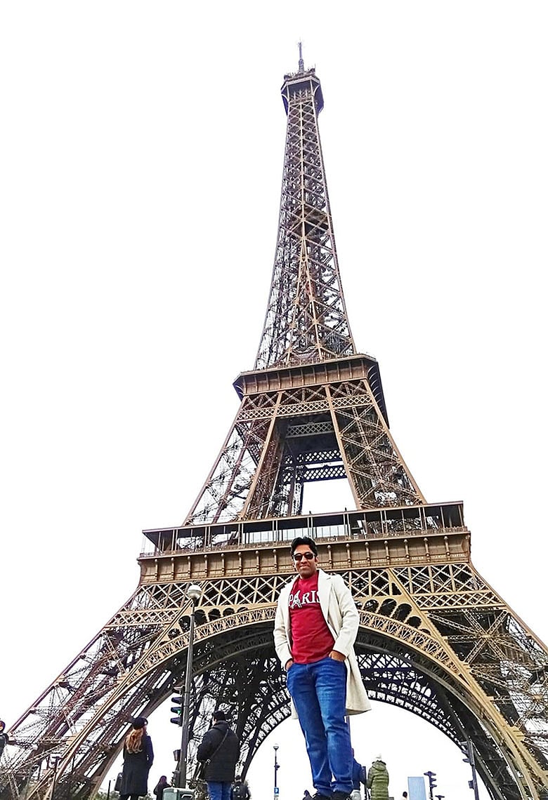 লোহার তৈরি এই বিশাল স্থাপত্য শুধু একটি টাওয়ার নয়, এটি ভালোবাসা, শিল্প আর আধুনিকতার প্রতীক। ১৮৮৯ সালে ফরাসি বিপ্লবের শতবর্ষ উপলক্ষে নির্মিত এই টাওয়ারের নকশা করেছিলেন প্রকৌশলী গুস্তাভ আইফেল। সিন নদীর তীরে দাঁড়িয়ে থাকা নান্দনিক এ টাওয়ার যেন প্যারিসের প্রাণ। আমরা দিনের আলোতে কিছু সময় আইফেল টাওয়ারের পাশে থাকি, ছবি তুলি। যদিও আমরা অপেক্ষা করছিলাম সন্ধ্যার ঝলমলে আলোয় জ্বলজ্বলে আইফেল দেখার জন্য।